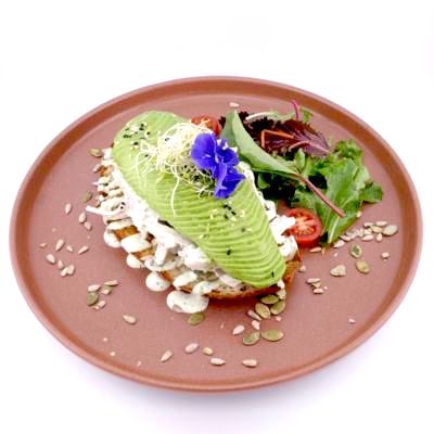 Avocado, shredded chicken, handmade sauce, mixed salad, tomato and sesame on sourdough