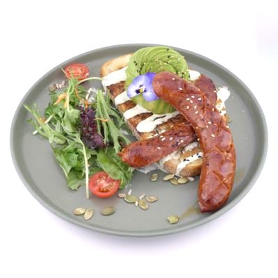 Avocado, spicy chorizo, handmade sauce, mixed salad, tomato and sesame on sourdough