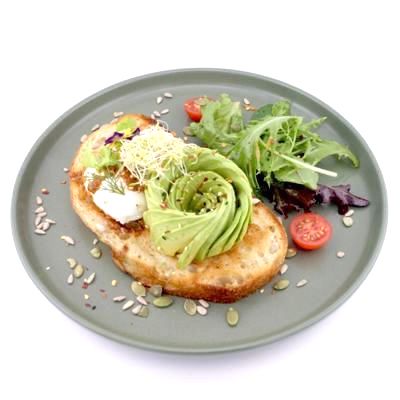 Avocado, poached / scrambled egg, spicy chorizo, bacon, mushroom, mixed salad, tomato and sesame on sourdough